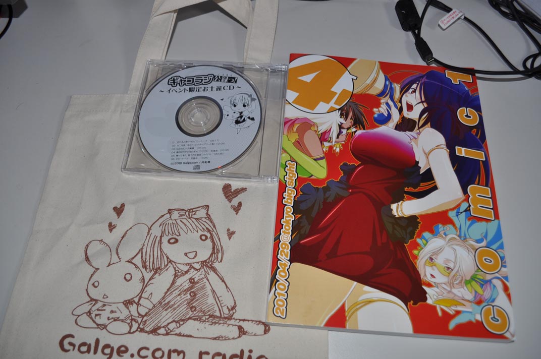 写真左はトートバックのセット。通販はしないとのことなのでイベント限定のアイテムです。因みに右はイベント前に新宿のとらのあなで買ったCOMIC1☆4のカタログ。よくよくチェックしたらギャルゲー島に配置されたけど周りは東方島に囲まれていてイベント前に終わった感じです。