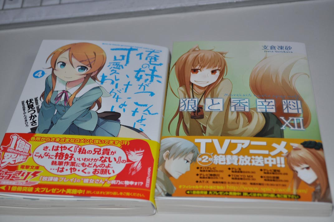 ラノベ分多し。とりあえず俺妹を朝の3時頃まで読んでいましたが思いがけないキャラがヒロインとして急浮上。それにしてもラストの展開は読めなかった・・・次の話は本当にどん風になるのか全然判らないわw